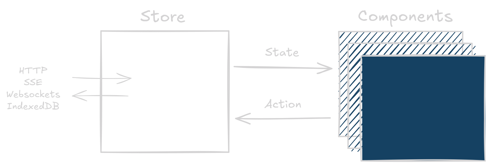 Data Client uses the flux store pattern, making debugging straightforward as each change is traceable and descriptive.